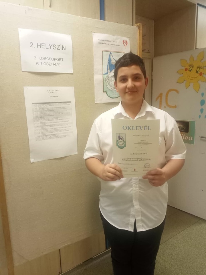 Gratulálunk a szép eredményhez neki és felkészítő tanárának, Reiner Zsoltné tanárnőnek!